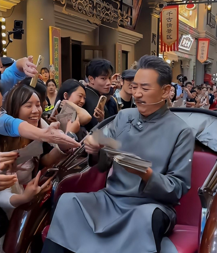 可谁能猜想,七十一岁的他,也难逃无戏可拍的荣幸,只可放下老戏骨的身体,走进景区,靠复刻陆振华这个扮装,收获营生。