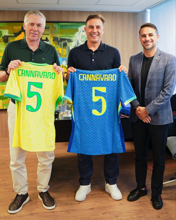 虎扑02月04日讯巴西国家队发布社媒,前意大利球星、现任乌兹别克斯坦国家队主教练法比奥-卡纳瓦罗近日造访了位于里约热内卢的巴西足协总部,受到了巴西国家队主教练卡洛-安切洛蒂和巴西男足国家队协调员罗德里戈-卡埃塔诺的热情接待。