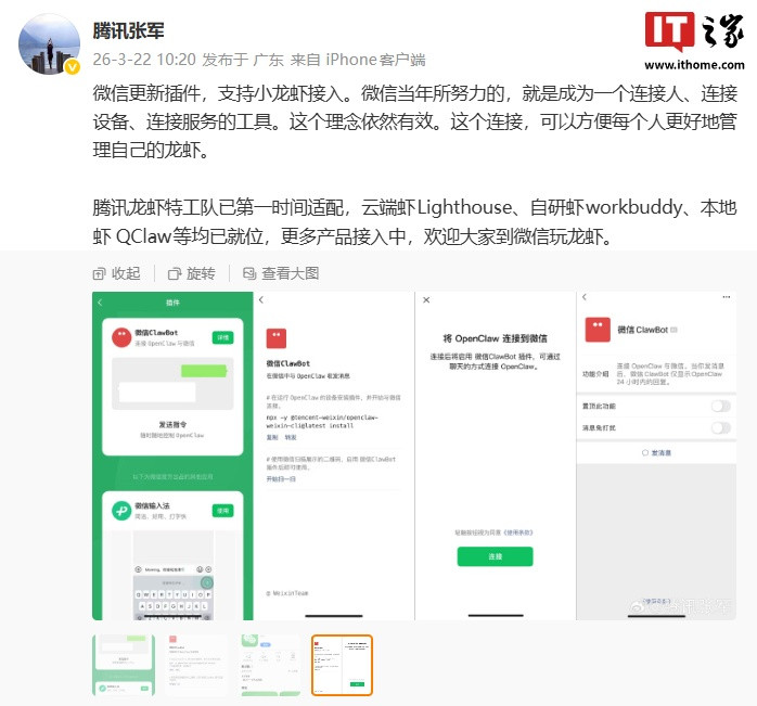 okoooapp 腾讯张军复兴“微信新增 ClawBot 插件”