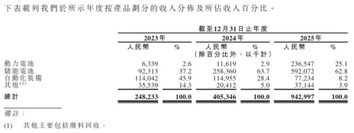 事迹层面,2023年至2025年,公司营收由2.48亿元增长至9.43亿元,主要受益于能源电板业务放量,尤其是来自上汽集团的订单孝顺权贵。业务结构亦发生变化:储能电板收入占比踏着实60%以上,能源电板占比快速进步至25.1%,而自动化装备收入占比抓续着落。