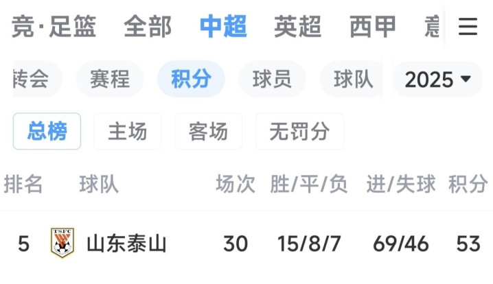 2025赛季:中超第5名;