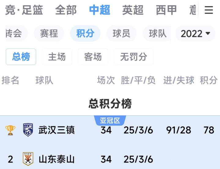 2022赛季:中超亚军;