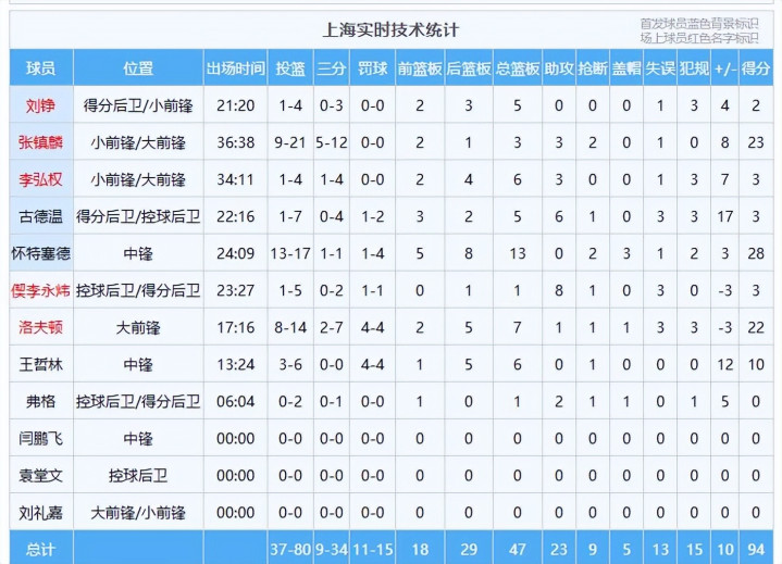 数据:萨姆纳32分9板1助、奎因16分9板10助3断、胡明轩11分2助、杜润旺9分1板1助、焦泊乔8分5板1助、萨林杰3分4板1助、张皓嘉3分2板1助、王少杰2分1板、张文逸3板;怀特塞德28分13板2断3帽、张镇麟23分3板3助2断、洛夫顿22分7板1助、王哲林10分6板、李弘权3分6板3助、古德温3分5板6助、偰李永炜3分1板8助、刘铮2分5板、弗格1板2助