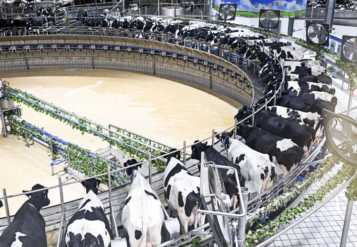 2025年7月28日拍摄的呼和浩特市伊利敕勒川生态智慧牧场挤奶车间。新华社记者李志鹏摄