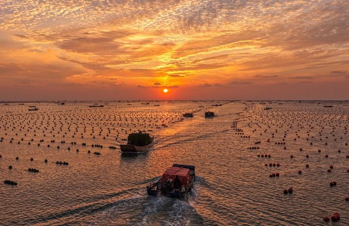 2025年10月24日,在山东省荣成市爱伦湾鲍鱼养殖区,okooo澳客app收获鲍鱼的养殖户驾驶船只返回渔港(无人机照片)。新华社发(李信君摄)